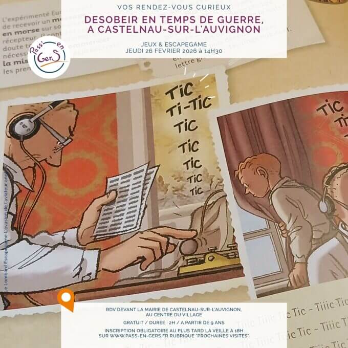 Situé sur la voie du Puy, Castelnau-sur-l’Auvignon est un site majeur de la Résistance gersoise. Venez découvrir les parcours singuliers de Jeanne Robert, de Georges Starr, des guérilleros espagnols, ainsi que la bataille de Castelnau-sur-l’Auvignon et son contexte historique, sous une approche ludique inédite.