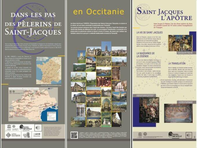 Cette exposition, 20 panneaux réalisés par le service d’Inventaire d’Occitanie, raconte le pèlerinage à travers des patrimoines significatifs de notre région. Abbayes, chapelles ou modestes objets sont autant de témoignages de la dévotion portée à saint Jacques mais aussi des nombreux liens et échanges avec l’Espagne.