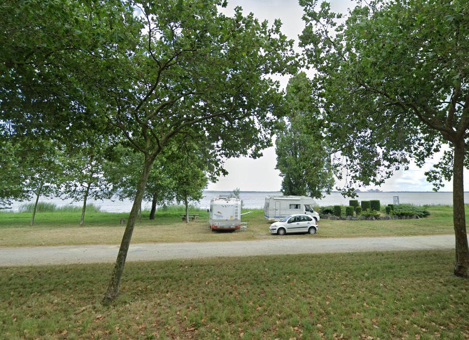 En bordure de l’estuaire de la Gironde et près des cabanes de pêcheurs, aire de stationnement aménagée avec des tables de pique-nique.