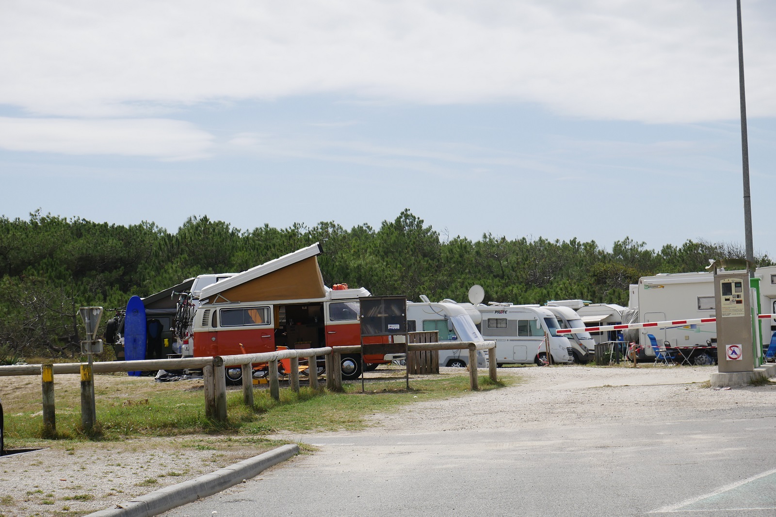 L’aire d’étape camping car est située près de la plage sud de Montalivet, en bordure de la dune.