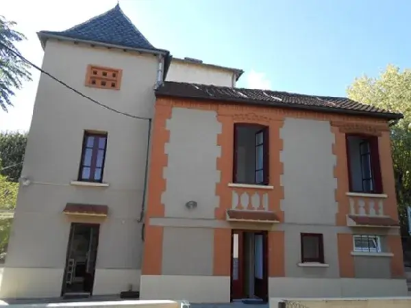 Maison individuelle surplombant le quartier du Gua. Au rez-de-chaussée, une cuisine équipée (micro-ondes, petit électroménager), une salle à manger, une salle de bains avec cabine de douche, WC séparés. Au 1er étage, 2 chambres joliment décorées avec chacune 1 lit 140. Un coin salon cosy avec canapé et télévision. WC indépendant à l’étage. A l’extérieur, grande terrasse ombragée avec vue sur le plan d’eau du Gua, salon de jardin, barbecue. Jardin clos. Maison à proximité de tous commerces et de l’établissement thermal de Cransac. Animaux acceptés si petits.