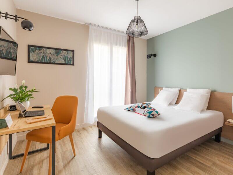 L’Appart’City Agen Centre propose un hébergement confortable et indépendant avec parkings privés et Wi-Fi gratuit. Nos 103 appartements sont dotés d’un écran LCD, d’une cuisine équipée de réfrigérateur, lave-vaisselle et cafetière ou bouilloire. Du studio double à l’appartement familial de 6 personnes, ils sauront satisfaire tous vos séjours d’affaires ou en famille. Un service de petit déjeuner est proposé tous les jours et la laverie accessible 24h/24h. Commandez votre pizza à l’accueil : cuite sur place en 10 minutes.