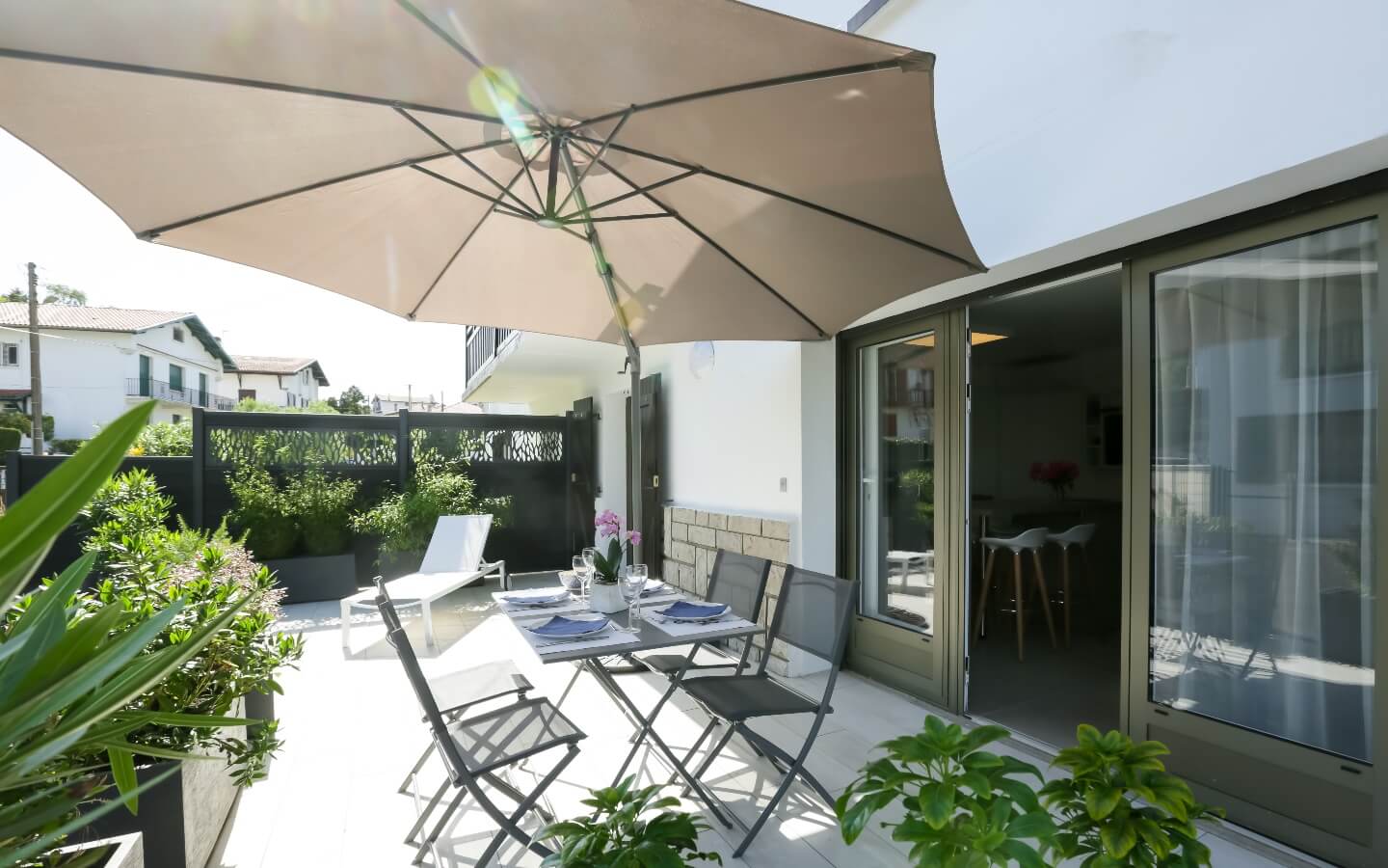 Joli appartement T2 avec prestations para hôtelières ( accueil, linge et ménage), tout confort avec terrasse et parking, situé à proximité de la grande plage et du centre-ville dans un quartier pavillonnaire et calme. Télévision écran plat, wifi, climatisation, chauffage, lave-linge, lave-vaisselle, plaque vitrocéramique, four combiné, réfrigérateur/congélateur, bouilloire, nespresso, sèche -cheveux.