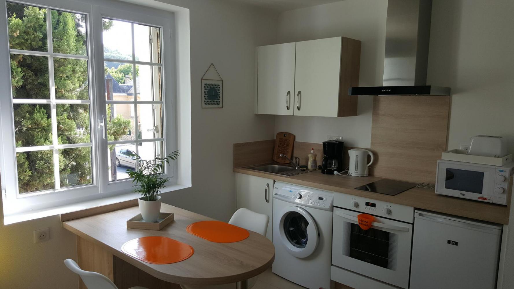 Nous vous accueillerons dans cet appartement au1er étage, pour 2 personnes tout juste rénové à la situation géographique idéale pour découvrir tous les sites touristiques du Périgord Noir.