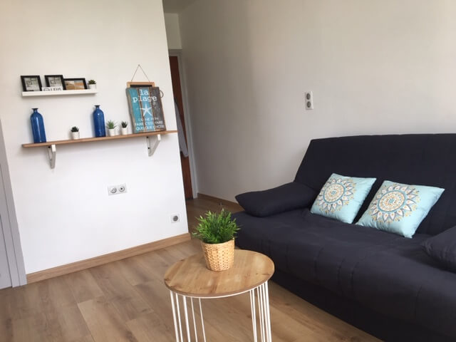 Appartement T2, tout équipé situé à 150m de la place centrale de Capbreton. Salon, cuisine, clic clac, chambre 1 lit 140, petite vue sur mer. Parking privé, cave, wifi, TV .