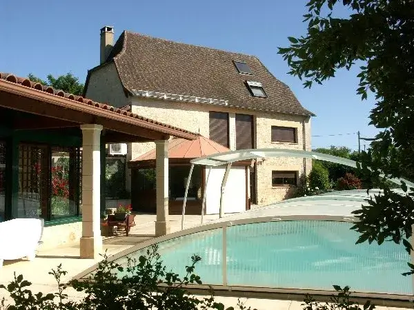 Gîte neuf indépendant, 1 chambre, 1 mezzanine, coin cuisine et son coin bar et petit déjeuner, salle à manger, salon (canapé convertible). Chauffage électrique et climatisation réversible, poêle à bois, coin détente sous auvent de 100 m², piscine couverte, spa, atelier d’activités peintures (stages aquarelle et dessin).