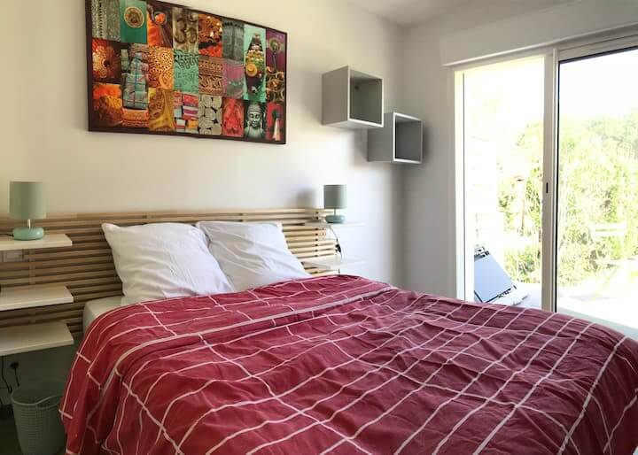 Petite terrasse et accès au jardin. Très calme.