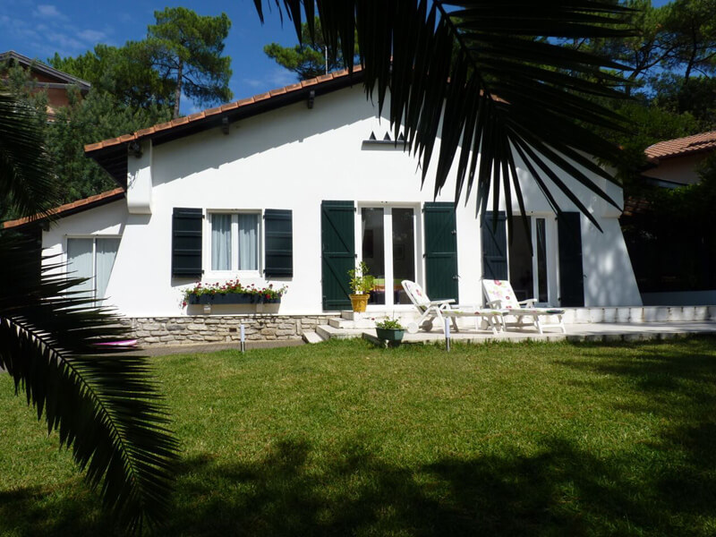 Villa de plain pied située entre lac et océan sur un terrain boisé et clos.