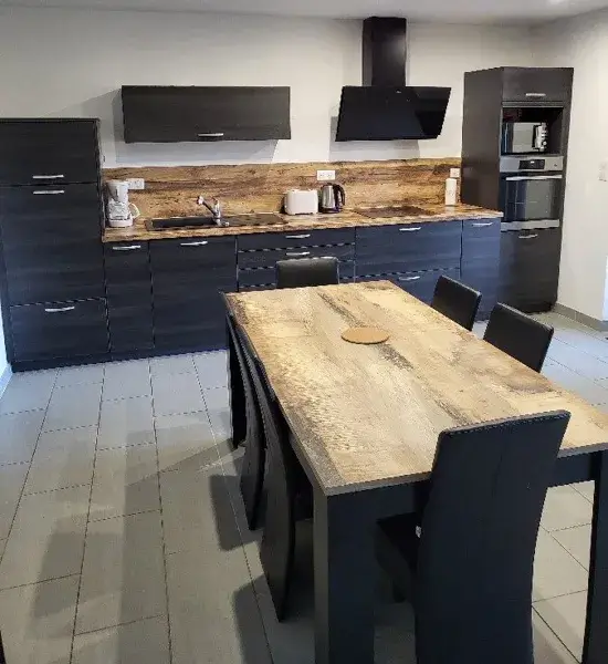 1 cuisine séjour avec plaque induction, micro-ondes, four, frigo américain, lave-vaisselle, télévision grand écran, canapé lit. 1 chambre avec 1 lit 140 et un bureau. 1 salle d’eau avec douche et double vasque. 1 wc séparé. 1 cellier avec lave linge et sèche lingeGrande terrasse couverte avec salon de jardin. Chauffage gaz.