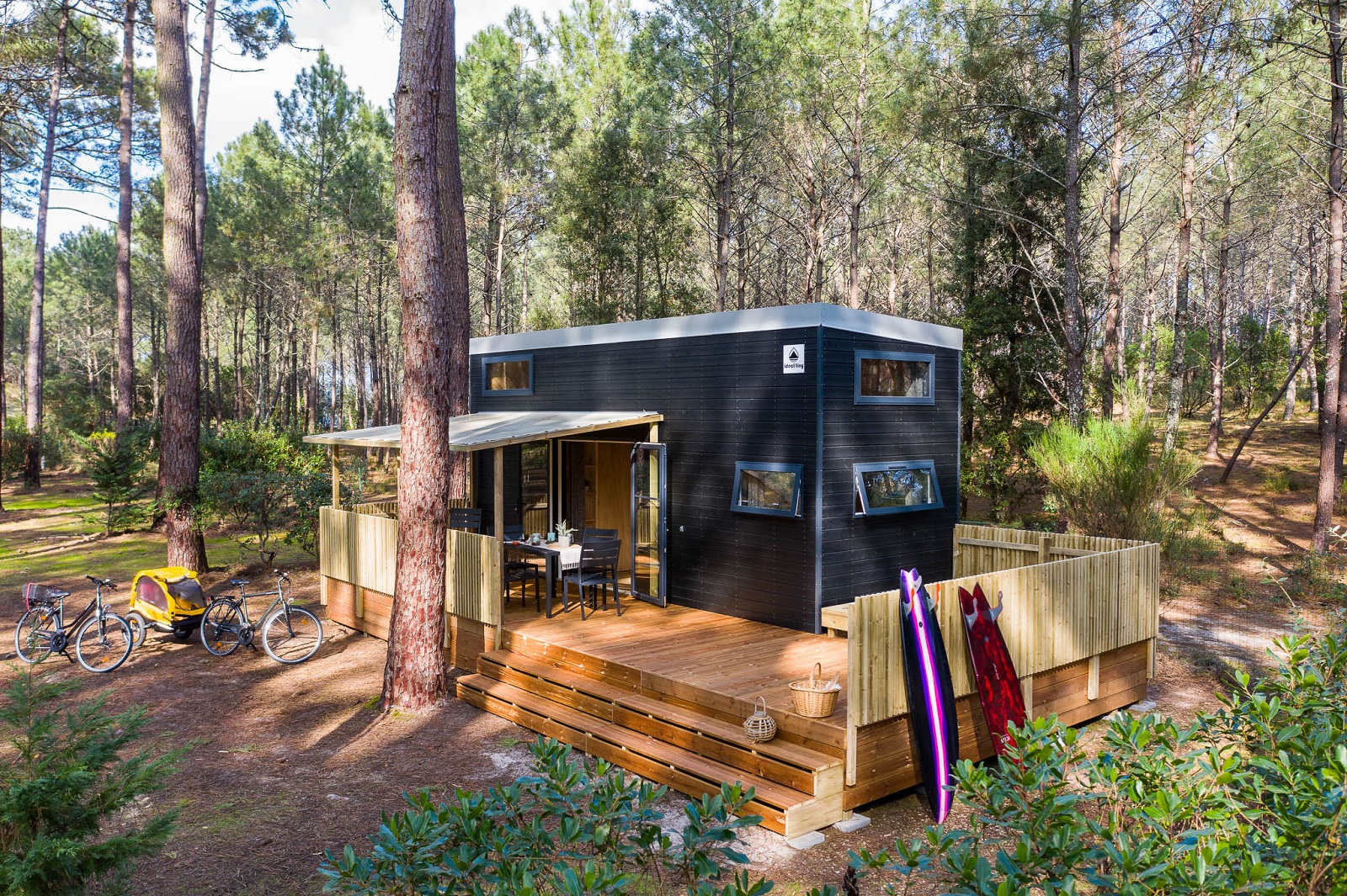 C’est au cœur de la célèbre station balnéaire de Lacanau, le spot emblématique du surf en France, que le camping Le Tedey a aménagé son nouveau concept de village-vacances, subtil mélange de camping chic et de village nature. Sur la pointe du Tedey, le camping occupe un site d’exception, sur la côte atlantique au bord du Lac de Lacanau. Niché sous les pins, entre lac et océan, cet authentique camping de Gironde est une véritable réserve naturelle de bonheur pour les amateurs d’expérience slow et nature.