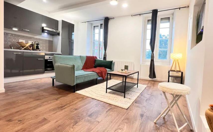 L’appartement est très bien situé, au coeur de la ville, sur la place principale. De nombreux commerces et restaurants sont accessibles à pied.