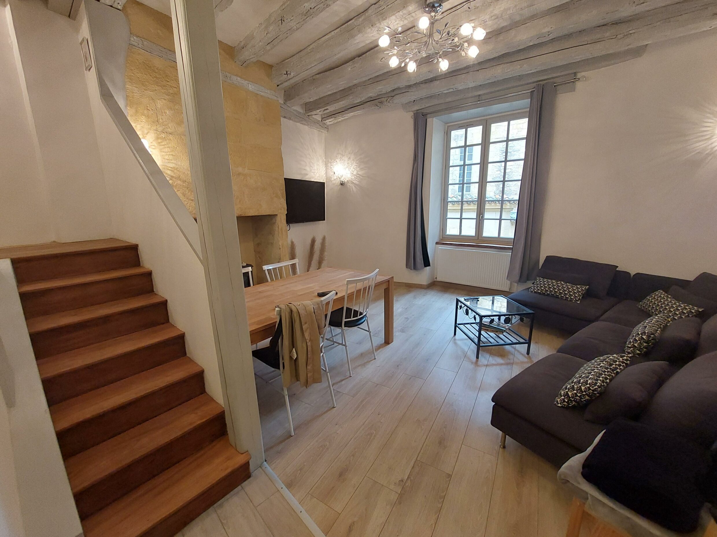Au coeur de la cité médiévale de Sarlat, cette maison de ville pour 4 pers offre le charme et tout le confort pour un séjour réussit en plein milieu du centre historique.Des vues à couper le souffle, sur les vieilles rues de la cité, éclairées au gaz la nuit.Une belle maison en pierre, avec cuisine équipée + TV, salon avec TV et salle-à-manger en rez-de-chaussée – 2 chambres à l’étage avec 2 lits 160 dont 1 avec TV – 1 salle d’eau avec douche et wc.De beaux volumes, de hauts plafonds font le charme de ce bel appartement.Parking gratuit dans un rayon de 200m.Commerces, restaurants, animations en bas de la ruelle.Gare sncf à moins de 2 km.Arrêt de bus à 500 m.Piste cyclable à moins de 2 km : vous pouvez louer les vélos sur place.Draps fournis, chauffage compris et ménage fin de séjour compris.Vous avez plus qu’à poser vos valises !