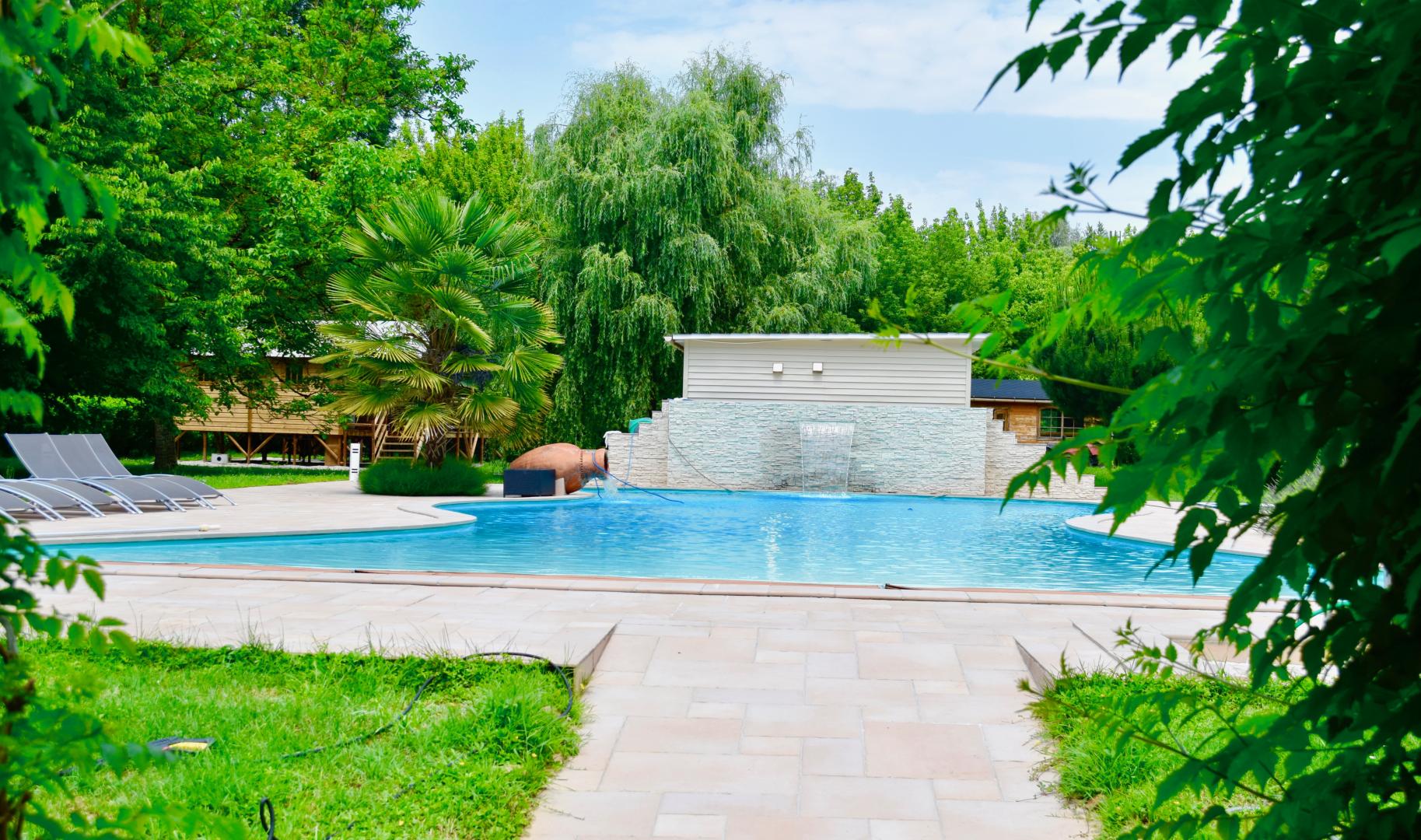 Ce domaine au pied des falaises et à 2 pas de la rivière Dordogne, plaît par son emplacement au coeur du village et face aux grottes de Lacave, tout en étant à proximité immédiate de la célèbre Cité Médiévale de Rocamadour et la toute aussi célèbre ville de Sarlat. Ce chalet-lodge implanté au fond du parc, au bord de la rivière est idéal pour découvrir la Vallée de la Dordogne. Ici, on aime l’ambiance cosy d’un chalet allié au confort moderne. On apprécie la superbe piscine de la propriété, le jacuzzi près de la piscine, le sauna ou le hammam à disposition ! On aime le parc ombragé propice à la détente ainsi que l’aire de jeux pour les enfants….et on adore les activités proposées : rando pédestre ou à vélo, le canoë / kayak, le radeau ou paddle board ; ou encore une journée au parc aquat