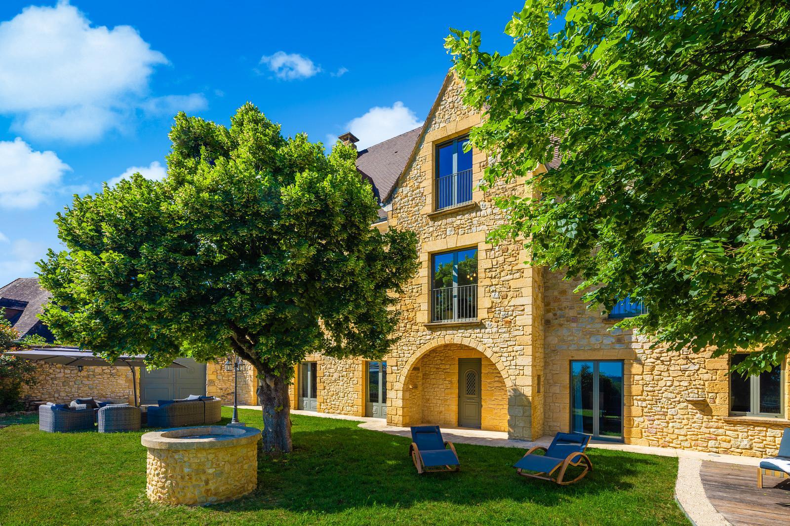Seulement 10 min à pied du centre-ville, le domaine est une imposante demeure en pierre dorée typique du Périgord Noir. Son architecture marie les codes des maisons traditionnelles avec ceux de constructions contemporaines.Dotée de 6 chambres, cette villa climatisée peut héberger jusqu’à 15 personnes. La piscine intérieure chauffée accessible 24h/24, le jacuzzi, le hammam, le terrain de tennis et le jardin sont pour vous !. Parmi les équipements rares et plébiscités, vous trouverez notamment des soins relaxants et de naturopathie, un terrain de pétanque et une cuisine à disposition.L’accès à l’ensemble de nos équipements est inclus au tarif de votre séjour. Les soins dispensés par notre naturopathe diplômée sont proposés en supplément et sur rendez-vous.Composition des 7 chambres : 7 lits en 160×200 dont 5 twinables et 1 lit de 80×2006 salles d’eau privées + wc