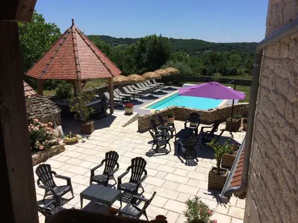 4 chambres d’hôtes, dans un bâti indépendant, 2 chambres de plain-pied, 2 chambres à l’étage, 3 chambres pour 2 ou 4 personnes + 1 chambre 2 personnes, télévision dans les chambres, lits 95 x 195 supplémentaires, accès indépendants, salle d’eau / WC privés, séjour (cheminée) réservé aux hôtes, terrasse, jardin, salons de jardin, piscine (12 x 5) chauffée, jacuzzi, parking. Table d’hôtes avec produits du terroir. Animaux acceptés sous conditions. Tarifs enfants. Serviettes de piscine et peignoirs fournis.