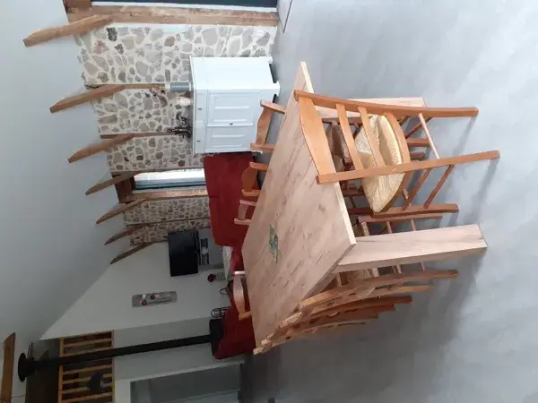 Gîte aménagé dans une ancienne grange sur 3 niveaux, dans un hameau, en campagne. 3 chambres (1 lit 160, 1 lit 140, 2 lits 90), mezzanine, 2 salles d’eau, coin-cuisine (lave-vaisselle)/séjour (canapé, fauteuils, télévision, poêle à bois), buanderie (lave-linge), chauffage complet électrique, terrasse (35m²) privée, terrasse (30m²) privée non closes et terrain (100m²) non clos privé, salons de jardin, barbecue. Parking privé, abri couvert. Location de draps et linge de toilette. Taxe de séjour. Possibilité d’une chambre/mezzanine avec 2 couchages supplémentaires (2 lits 90). Espaces extérieurs en cours d’aménagement.