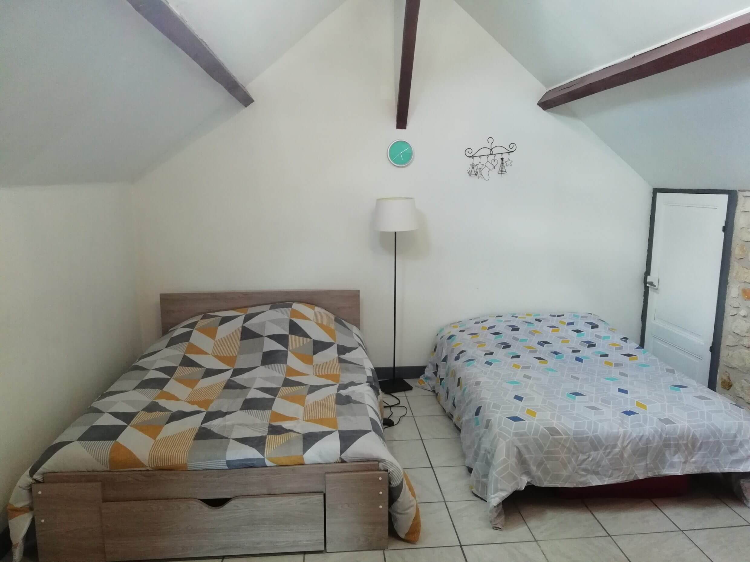 Il comprend un lit double (140×200), un clic-clac très confortable, une cuisine aménagée, une salle de bain et des toilettes. Les lits sont préparés à l’arrivée et le linge de maison fourni. Terrain et terrasse en partie accessibles (terrain de pétanque, barbecue).