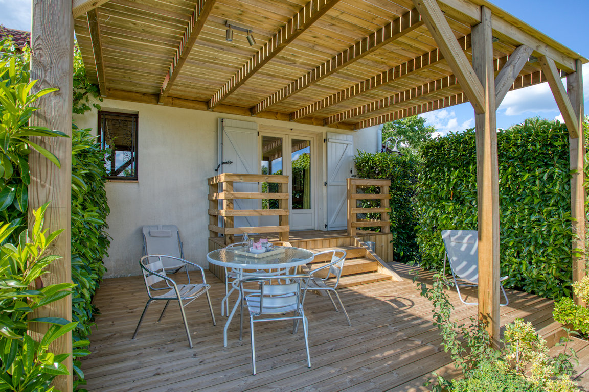 Le gîte Fayrac est équipé d’une pompe à chaleur permettant une chaleur confortable et homogène l’hiver et une climatisation l’été, il dispose également d’une terrasse avec salon de jardin, parasol, 2 chaises longues, une pergola et un barbecue.