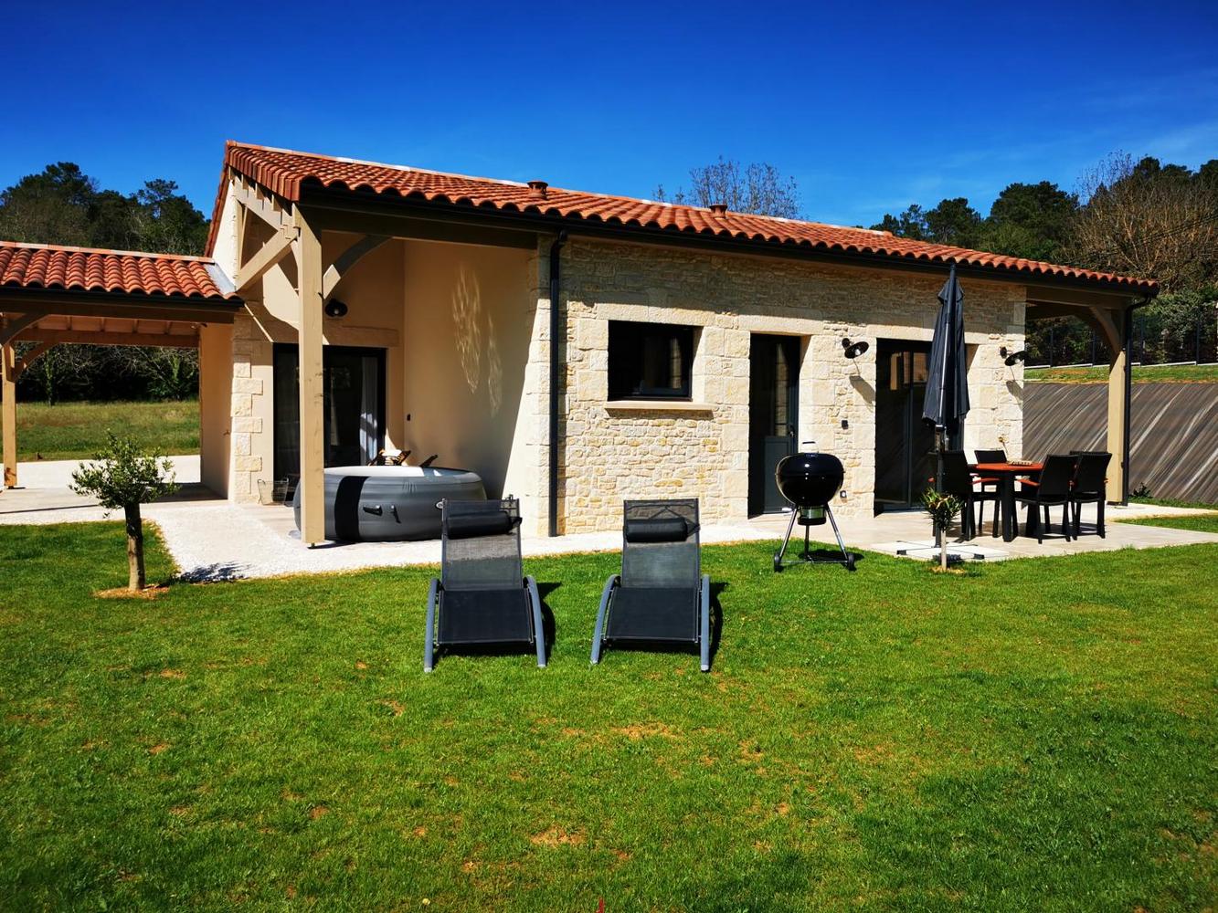 Très proche de Sarlat, la ville emblématique du Périgord Noir, maison indépendante très lumineuse et confortable, avec un jacuzzi privatif sur la terrasse couverte sans vis-à-vis.