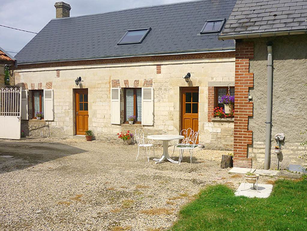 Ancienne fermette en pierre de pays champenois sur terrain clos arboré 2000 m². Patio. Parking. Rez-de-chaussée : cuisine (four à pain authentique, micro ondes, congélateur). Séjour/salon (TV, convertible, poële insert). 1 ch. (1 lit 1 pers.) avec annexe (1 lit 1 pers.). Etage : 1 ch. (1 lit 2 pers.). 1 ch. (2 lits 1 pers.). Salle d’eau. WC. Laverie indépendante (douche, wc). Lits faits (draps fournis). Option ménage 30 €. Chauffage électrique. Lit et chaise bébé. Caves de Champagne, Reims 18 km. Chemin des Dames 20 km. Parc nautique 25 km.