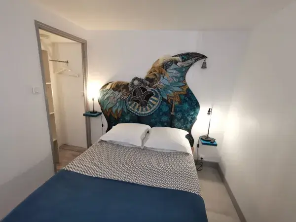 Cette chambre vous fera profiter d’un lit de 140 avec sa douche et toilette. Vous pourrez vous installer sur votre terrasse couverte pour vous reposer ou lire un bon bouquin ainsi que d’une entrée privative donnant sur le jardin.