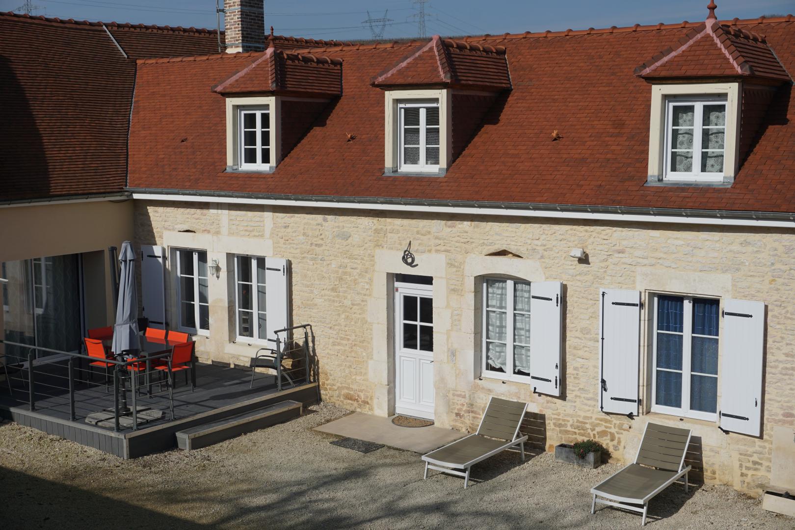 Au coeur du vignoble champenois, à 40 km de Troyes, à 15 km de Bar sur Seine et de Chaource, à 9 km des Riceys. Delphine et Gérard, viticulteurs passionnés se feront un plaisir de vous accueillir et de vous faire découvrir leur métier : promenades dans les vignes, dégustation de Champagne dans leur caveau…Au rez-de-chaussée de leur maison, les propriétaires vous proposent une chambre composée d’un lit double (140×190), d’une télévision écran plat et d’une salle d’eau privative avec douche à l’italienne, vasque et WC. Les petits déjeuners sont servis en terrasse ou dans le séjour où vous aurez à disposition un coin lecture/détente. A l’extérieur, vous aurez accès à un parking clos et privatif, à une cour fermée à l’abri des regards où salon de jardin et bains de soleil seront mis à votre disposition. Nous vous laissons la possibilité de pique-niquer uniquement en extérieur (table à disposition), la chambre n’étant pas adaptée. Taxe de séjour à régler sur place (0.50€/jour/personne).