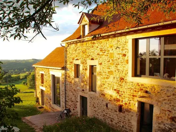 CHABBERT 2 : Dans une région authentique, calme et ensoleillée, bel ensemble comprenant une grande maison et deux pigeonnier sur un terrain d’1ha, vue imprenable sur la vallée, piscine chauffée , terrains pour volley et pétanque, ping-pong, barbecue, wifi, 4 salles de bains, 4 wc, cuisine d’été et cuisine d’hiver, tout confort 2/12 personne .