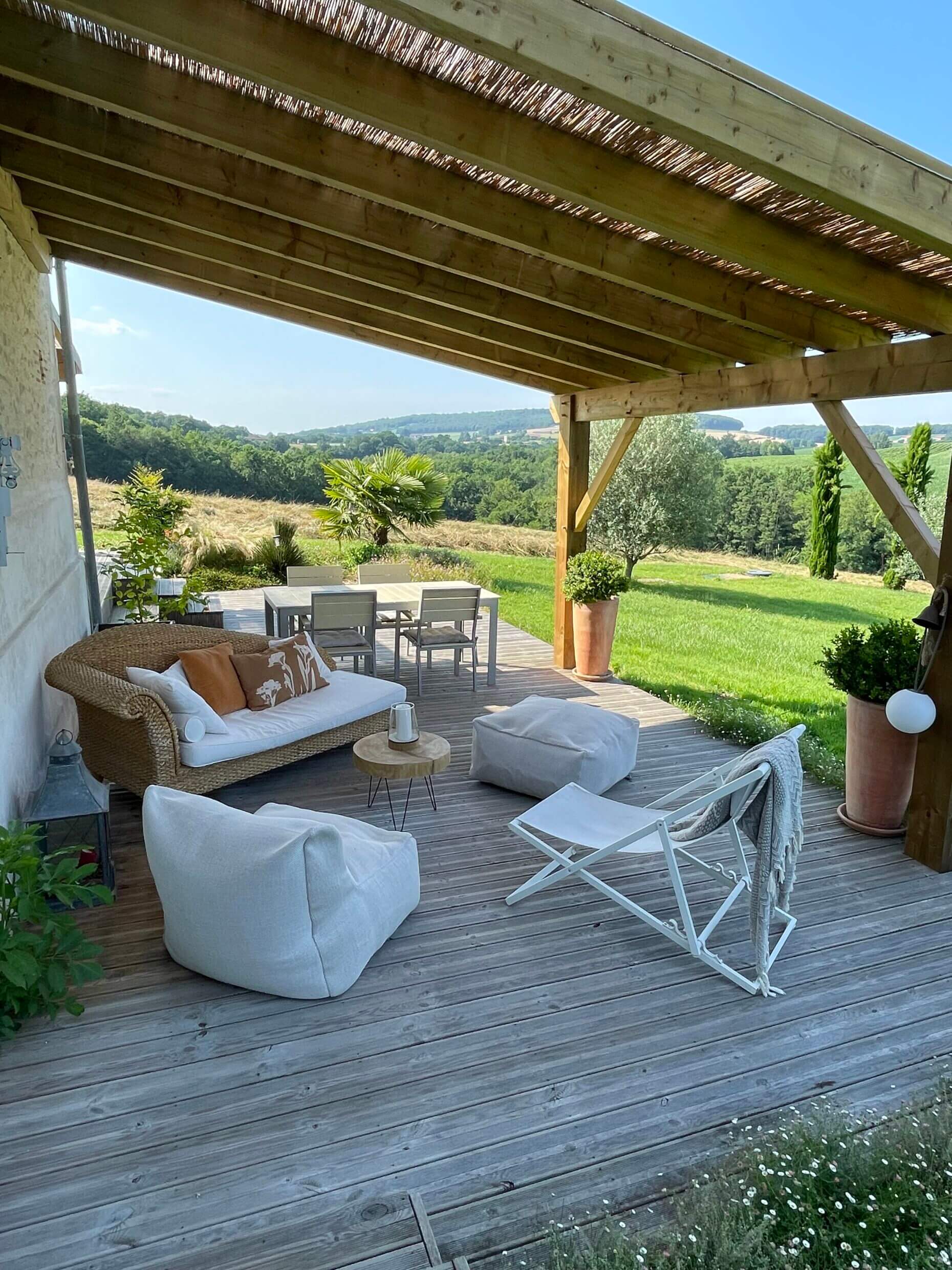 Grange rénovée avec passion, située dans un cadre de verdure où règnent calme et quiétude. . Ambiance chaleureuse garantie avec la cheminée pour l’hiver et le jacuzzi tout au long de l’année.