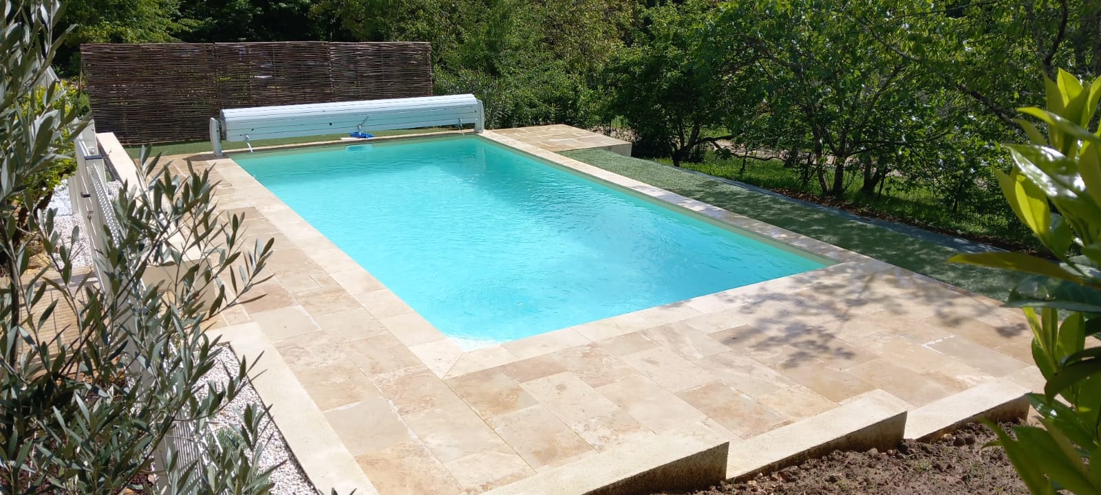 ***NOUVEAU à partir de fin mai 2024***: PISCINE privée, chauffée 8 x 4m (chauffée à partir de fin mai à fin septembre en fonction de la météo), au sel, avec rideau, clôture et plage en pierre de Turquie.
