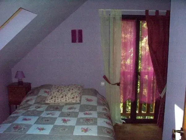 Chambre tout confort avec salle de bain, lit 140 + banquette lit convertible pouvant convenir à un couple et 2 enfants. WC au rez-de-chaussée, pièce à vivre avec télévision écran plat, wifi, tonnelle et cour avec salon de jardin + garage moto et espace boisé sont à votre disposition. Possibilité petit-déjeuner et repas le soir. Accueil chaleureux.
