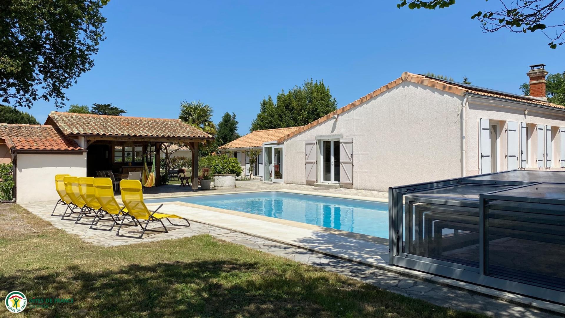 Situé dans le nord du Médoc, à l’entrée du village de Vensac, à moins de 10 kilomètres des premières plages océanes, cette maison indépendante de plain pied bénéficie d’un vaste jardin clos de 2600 m² ; vous apprécierez vous reposer à l’ombre du grand chêne, ici maître des lieux, vous rafraichir dans la grande piscine privative à l’eau salée (5x10m), partager d’agréables moments en famille ou entre amis autour des différents espaces extérieurs à votre disposition : patio et cuisine d’été avec barbecue à gaz, terrasses. La propriété, entièrement close, permet de stationner plusieurs véhicules et de laisser libre votre animal de compagnie le cas échéant. La maison de style régional a été récemment rénovée avec des matériaux traditionnels et écoresponsables. Draps et linges inclus.