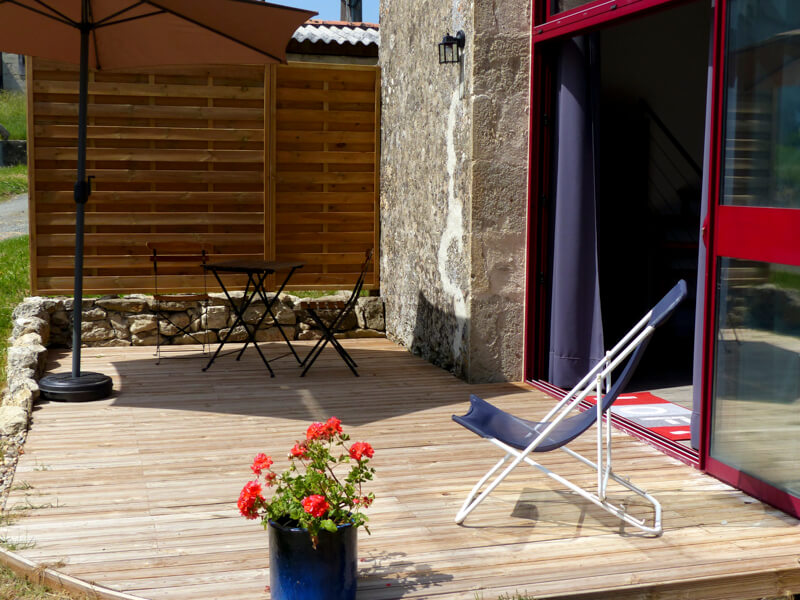 Adossé à la maison du propriétaire, ce meublé de 45 m² est aménagé comme un loft et dispose d’un accès indépendant et d’une terrasse en bois de 15 m².