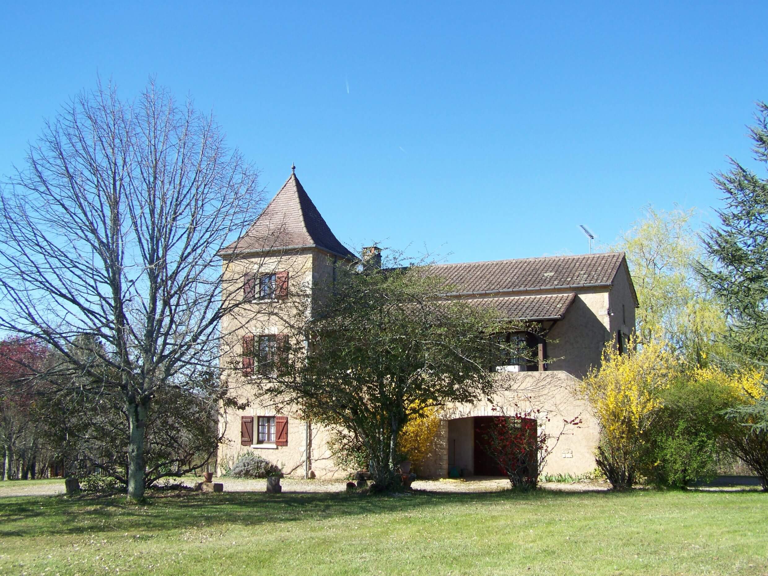 Grande maison indépendante à l’architecture locale bénéficiant de tranquillité dans de grands espaces extérieurs. Environnement de campagne boisée, au nord de la vallée du Lot, proche de la Dordogne et du Lot et Garonne.