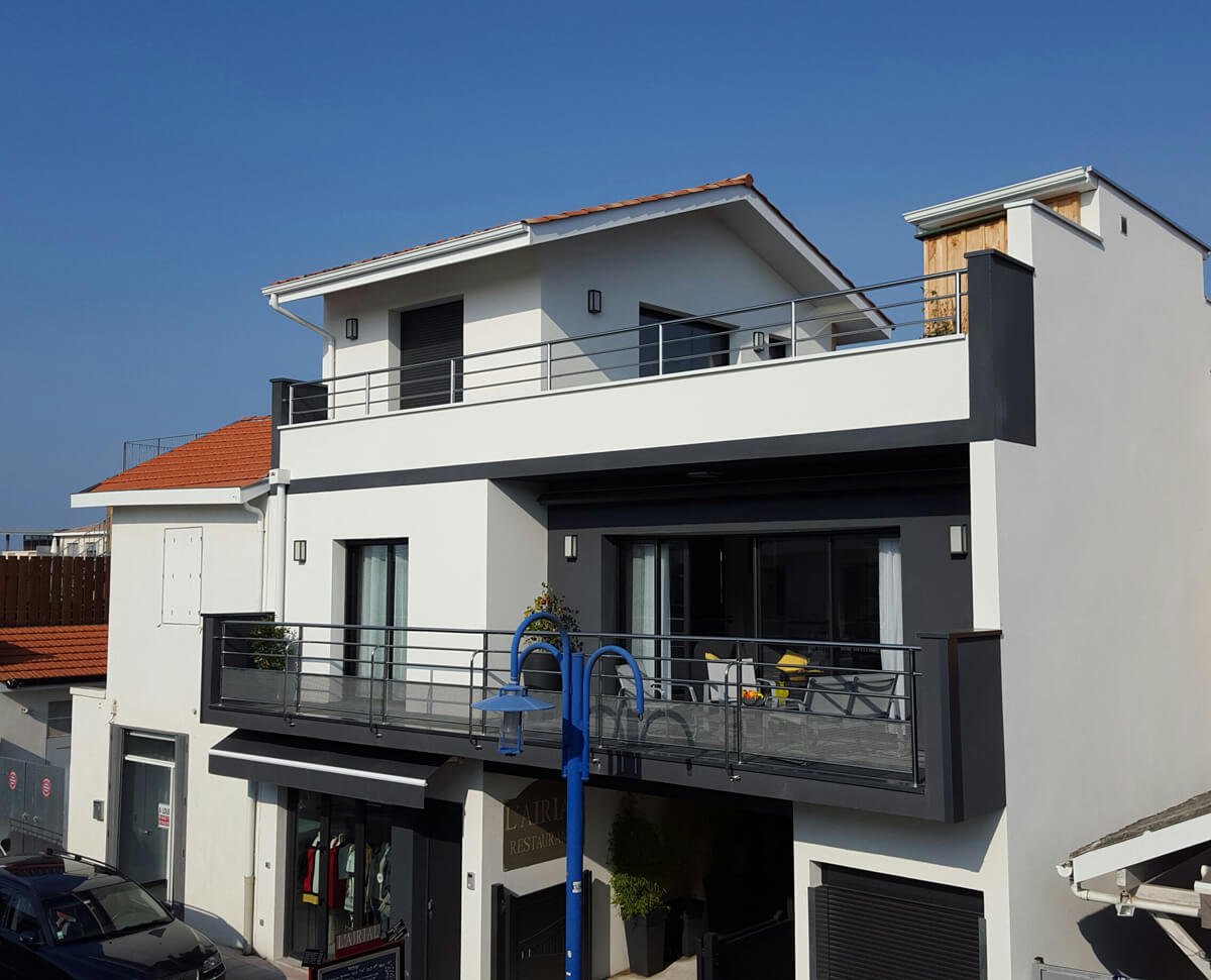 Pièce à vivre harmonieuse avec cuisine équipée, coin repas, coin salon (canapé avec véritable matelas 2 pers. 140×190) la grande baie vitrée à galandage donne sur le balcon et le salon extérieur, 2 Chambres ( 1 lit 160×200(1er étage); 2 lits 90×200 (2ème étage), télé dans chaque chambre et nombreux rangements) , 1 Salle d’eau, 1 Salle de Bain, 2 W.C, au 2° étage le coin cuisine d’appoint donne accès au clou de l’appartement, la magnifique terrasse, véritable salon extérieur cossu à l’abri des regards, lieu propice aux bains de Soleil. WIFI gratuit.