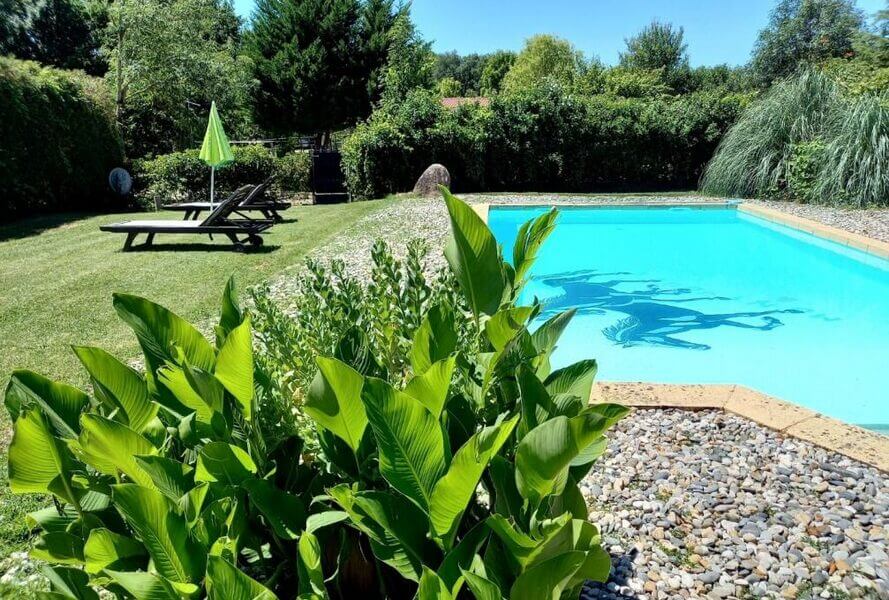 Piscine exposée plein sud avec plage immergée ( Pour une entrée progressive dans l’eau), puis fond plat de 0.80 cm suivi d’une inclinaison douce jusqu’à 1m60 de profondeur