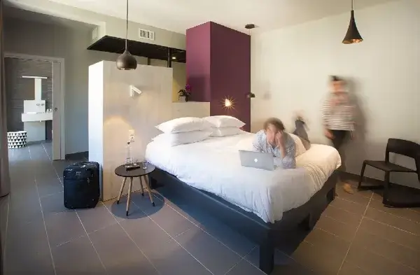 Studio Les Pénitents Noirs, 30 m² pour 2 pers., grand lit 180 cm, kitchenette équipée, Wi-Fi, TV, clim. Vue sur la chapelle des Pénitents Noirs. Accès piscine rooftop, sauna, salle de sport et vélos. Parking gratuit.