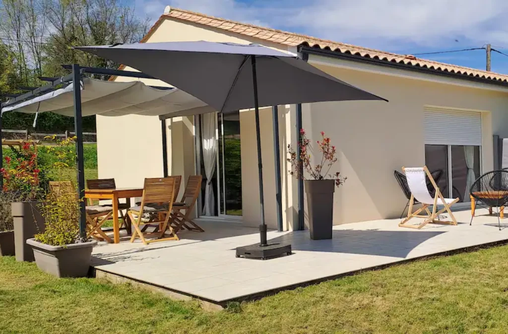 À 6 km de Bergerac, découvrez une maison récente de 100 m², climatisée et lumineuse, située sur un terrain arboré de 6 000 m² avec mare.