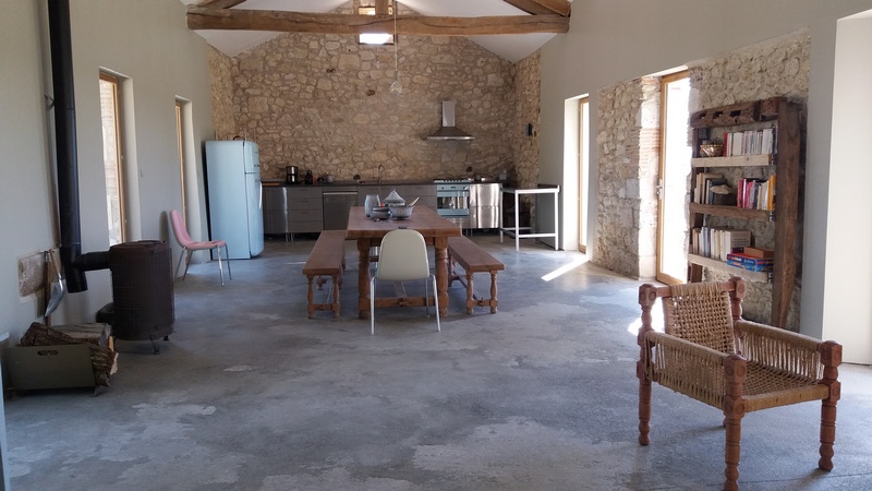 Dans un hameau familial à l’abri des regards, la maison est entourée de vignes, de deux grands cèdres du Liban et d’un hectare de terrain. Ce rectangle de pierre, de bois et de béton qui embrasse d’un seul regard les collines du village est un véritable havre de paix au charme dépouillé. Il est constitué d’une seule pièce de 150 m2 avec une mezzanine qui sert de dortoir dont l’accès se fait par une échelle de meunier. Attention, l’échelle de meunier ne convient pas aux enfants de moins de six ans sans la vigilance des parents.