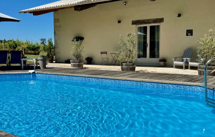 Situé, au sud de Bergerac, au croisement de la Dordogne, la Gironde et du Lot-et-Garonne, Bosmat et Olivier vous invitent à découvrir les charmes du territoire. Ce gîte moderne, chaleureux et tout équipé est situé au milieu des vignes. A seulement 10 min. d’Eymet et 15 min. de Duras, la propriété, ancienne ferme vigneronne se compose de la maison principale habitée par les propriétaires et de deux très beaux gîtes indépendants (50 m² chacun) qui ont été créés dans une grange entièrement rénovée. Exposé et aménagé de façon à respecter l’intimité de chacun, chaque hébergement dispose d’une terrasse, d’une cuisine entièrement équipée, d’une cheminée d’ambiance, d’un coin salon, une chambre et une salle d’eau. Vous partirez à la découverte des Bastides, du Château de Duras, de Bergerac, des traditionnels marchés nocturnes ou profiterez du calme au bord de la piscine ou autour d’un barbecue.