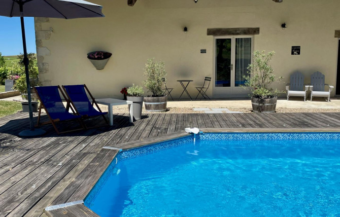 Situé, au sud de Bergerac, au croisement de la Dordogne, la Gironde et du Lot-et-Garonne, Bosmat et Olivier vous invitent à découvrir les charmes du territoire. Ce gîte moderne, chaleureux et tout équipé est situé au milieu des vignes. A seulement 10 min. d’Eymet et 15 min. de Duras, la propriété, ancienne ferme vigneronne se compose de la maison principale habitée par les propriétaires et de deux très beaux gîtes indépendants (50 m² chacun) qui ont été créés dans une grange entièrement rénovée. Exposé et aménagé de façon à respecter l’intimité de chacun, chaque hébergement dispose d’une terrasse, d’une cuisine entièrement équipée, d’une cheminée d’ambiance, d’un coin salon, une chambre et une salle d’eau. Vous partirez à la découverte des Bastides, du Château de Duras, de Bergerac, des traditionnels marchés nocturnes ou profiterez du calme au bord de la piscine ou autour d’un barbecue.