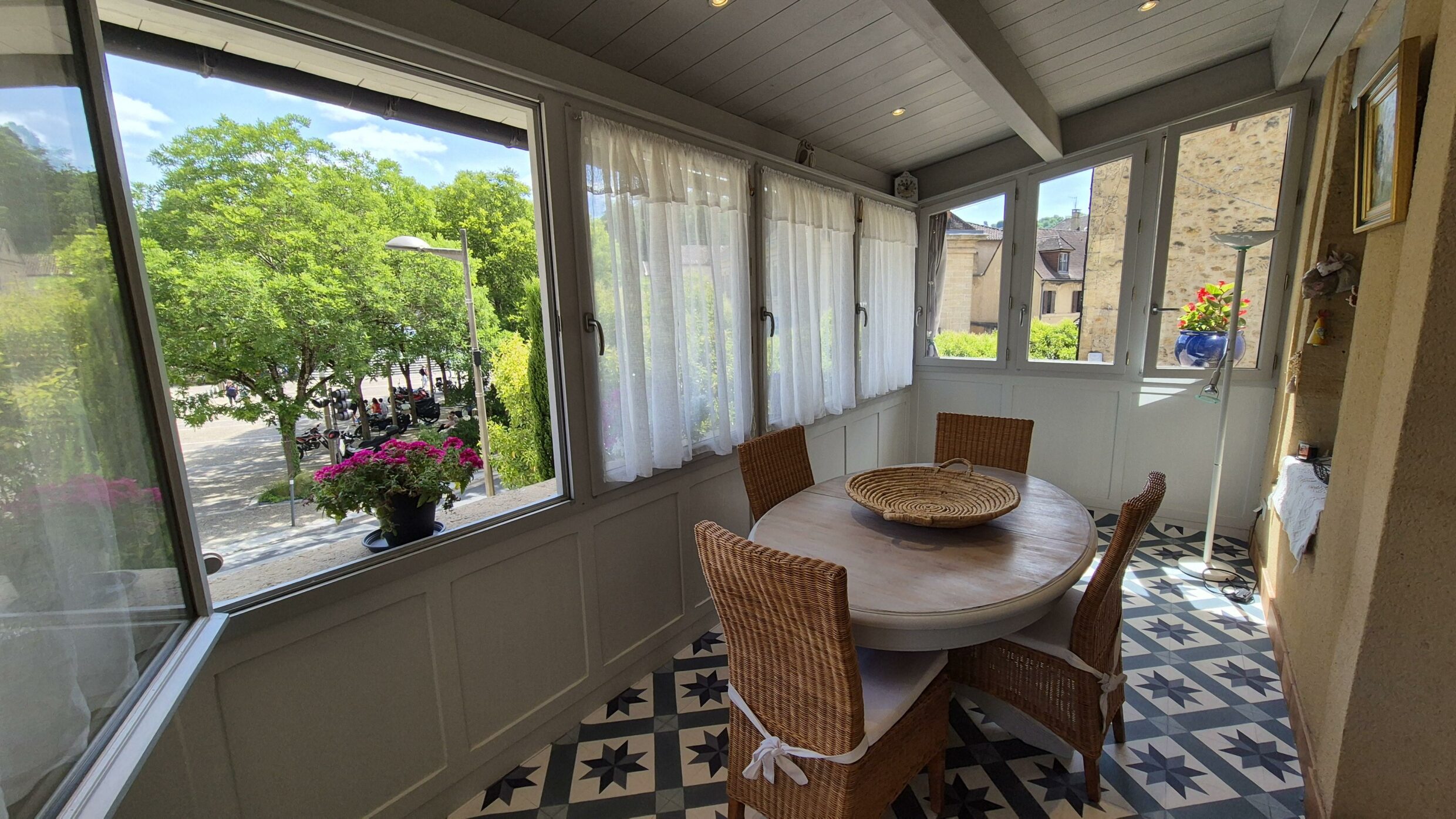 L’Escapade Sarladaise est une petite maison climatisée pour 2, située en plein cœur de Sarlat.Terrasse privée et fermée pour prendre le café au soleil.Belle et grande véranda, parfaite pour observer la vie sarladaise à toute heure. On y profite de l’animation du centre historique tout en savourant le confort d’un intérieur lumineux et bien équipé. La chambre avec 1 lit 140 donne sur une salle d’eau avec douche et WC. Vous y trouverez aussi un salon agréable, une cuisine fonctionnelle, une buanderie avec lave-linge et sèche-linge. Au départ de la place, partez à la découverte des châteaux de la vallée, des villages classés, des marchés, des balades en canoës, à vélo depuis l’appartement ou des jardins suspendus… tout est à portée ! Parking gratuit à moins de 200 m. Animations, restaurants, commerces, boulangerie à 50 m.