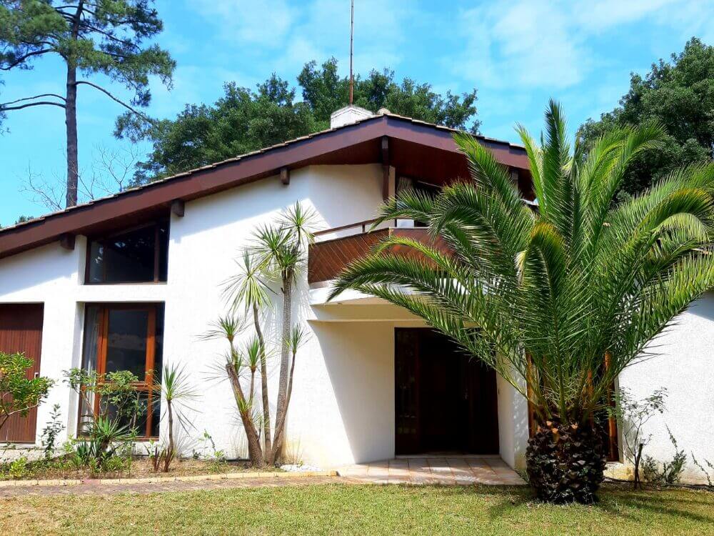 Maison indépendante à étage, pour 6 personnes, avec jardin arboré, terrasse, balcon, parking privé, située dans le quartier des Bourdaines, dans un environnement calme et boisé, à 10 min de l’océan à pied et à 5 minutes du lac d’Hossegor à vélo.