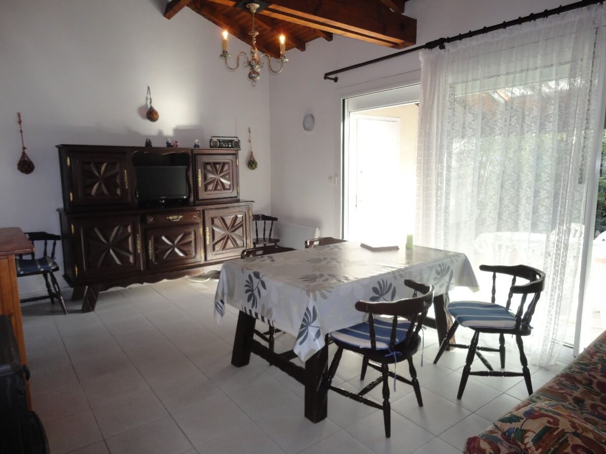 Maison mitoyenne de plain-pied, pour 5 personnes avec terrasse couverte, située dans l’espace résidentiel des Bourdaines, à 5 minutes à pied de l’océan et à proximité de La Vélodyssée.