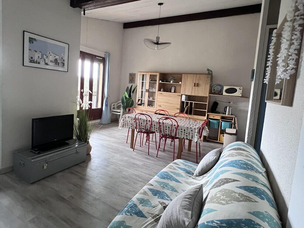 Appartement pour 4 personnes avec couchages supplémentaires au 3ème étage dans une résidence, situé dans l’espace résidentiel du Penon. Vue paisible sur la forêt. Place de parking privative. Proche de la piste cyclable La Vélodyssée.