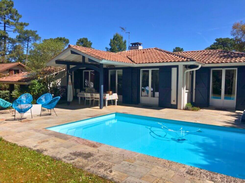 Maison de plain pied pour 10 personnes, entouré d’un environnement calme et arboré, possède un jardin et une piscine chauffée.