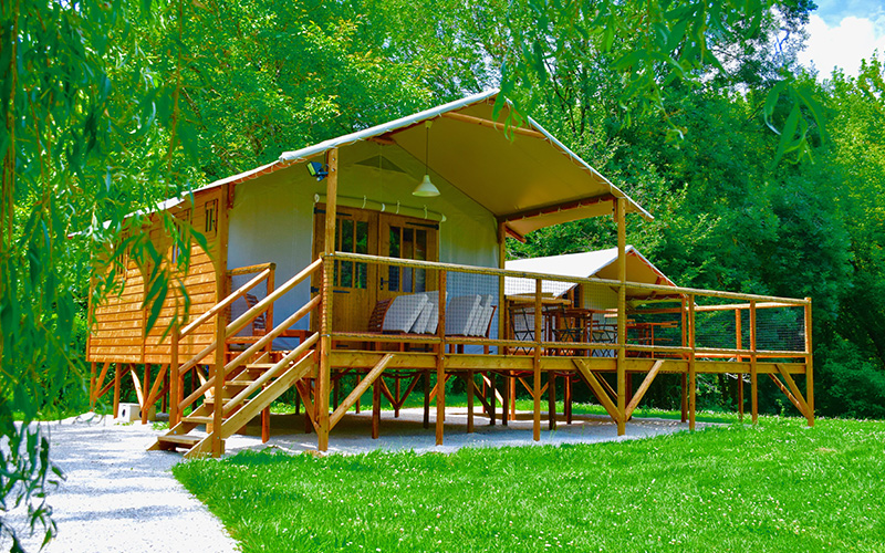 Ce domaine au pied des falaises et à 2 pas de la rivière Dordogne, plaît par son emplacement au coeur du village et face aux grottes de Lacave, tout en étant à proximité immédiate de la célèbre Cité Médiévale de Rocamadour et la toute aussi célèbre ville de Sarlat. Ce chalet-lodge implanté au fond du parc, au bord de la rivière est idéal pour découvrir la Vallée de la Dordogne. Ici, on aime l’ambiance cosy d’un chalet allié au confort moderne. On apprécie la superbe piscine de la propriété, le jacuzzi près de la piscine, le sauna ou le hammam à disposition ! On aime le parc ombragé propice à la détente ainsi que l’aire de jeux pour les enfants….et on adore les activités proposées : rando pédestre ou à vélo, le canoë / kayak, le radeau ou paddle board ; ou encore une journée au parc aquat