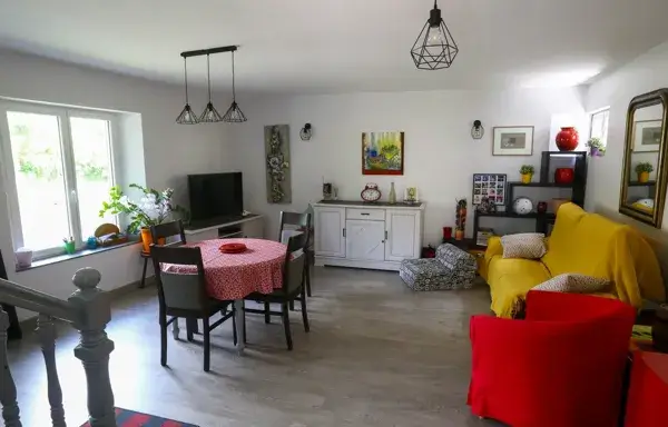 – une salle à manger avec séjour, coin canapé, TV + wifi