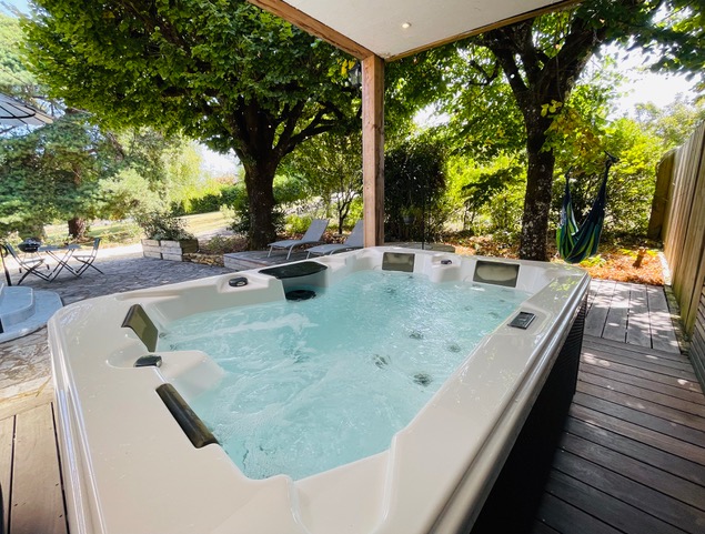 Notre charmante petite maison de campagne entièrement rénovée de 80 m2 vous offre un spa privatif chauffé toute l’année, abrité d’une pergola pour des moments de détente en pleine nature. Située sur les hauteurs de Sarlat, dans un parc arboré paisible, elle est à seulement 15 minutes à pied de la cité médiévale de Sarlat et à proximité des sites touristiques tels que la vallée de la Dordogne, Beynac, La Roque Gageac, Domme, Lascaux, Rocamadour. La maison dispose d’une grande chambre à l’étage avec un lit 160 et une banquette lit pour une personne, d’une cuisine équipée (lave-vaisselle, micro-ondes, four, cafetière Nespresso, bouilloire, grille-pain, réfrigérateur/congélateur) ainsi que d’une salle d’eau. Les draps et les serviettes sont fournis pour votre confort. Vous pourrez profiter d’un parking privatif et d’un accès wifi gratuit. Nos autres logements sur www.locationtournesol.com