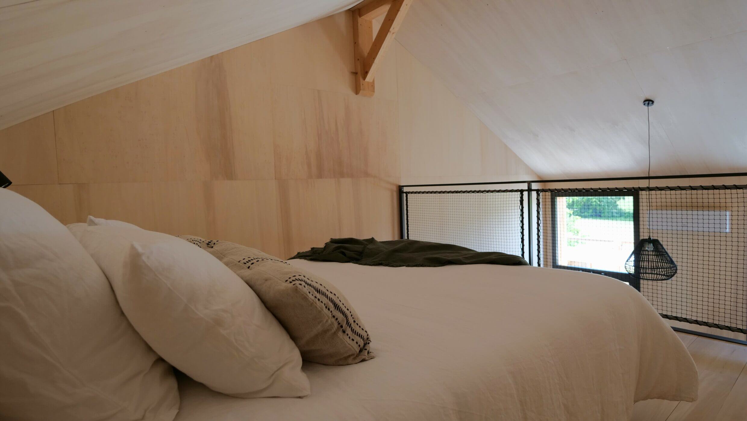 Le loft peut accueillir 2 personnes. Il dispose d’un lit queen size 160×200 cm en mezzanine, d’une cuisine aménagée et équipée avec 2 feux induction, lave-vaisselle, micro-ondes, bouilloire électrique, cafetière expresso et grille-pain.