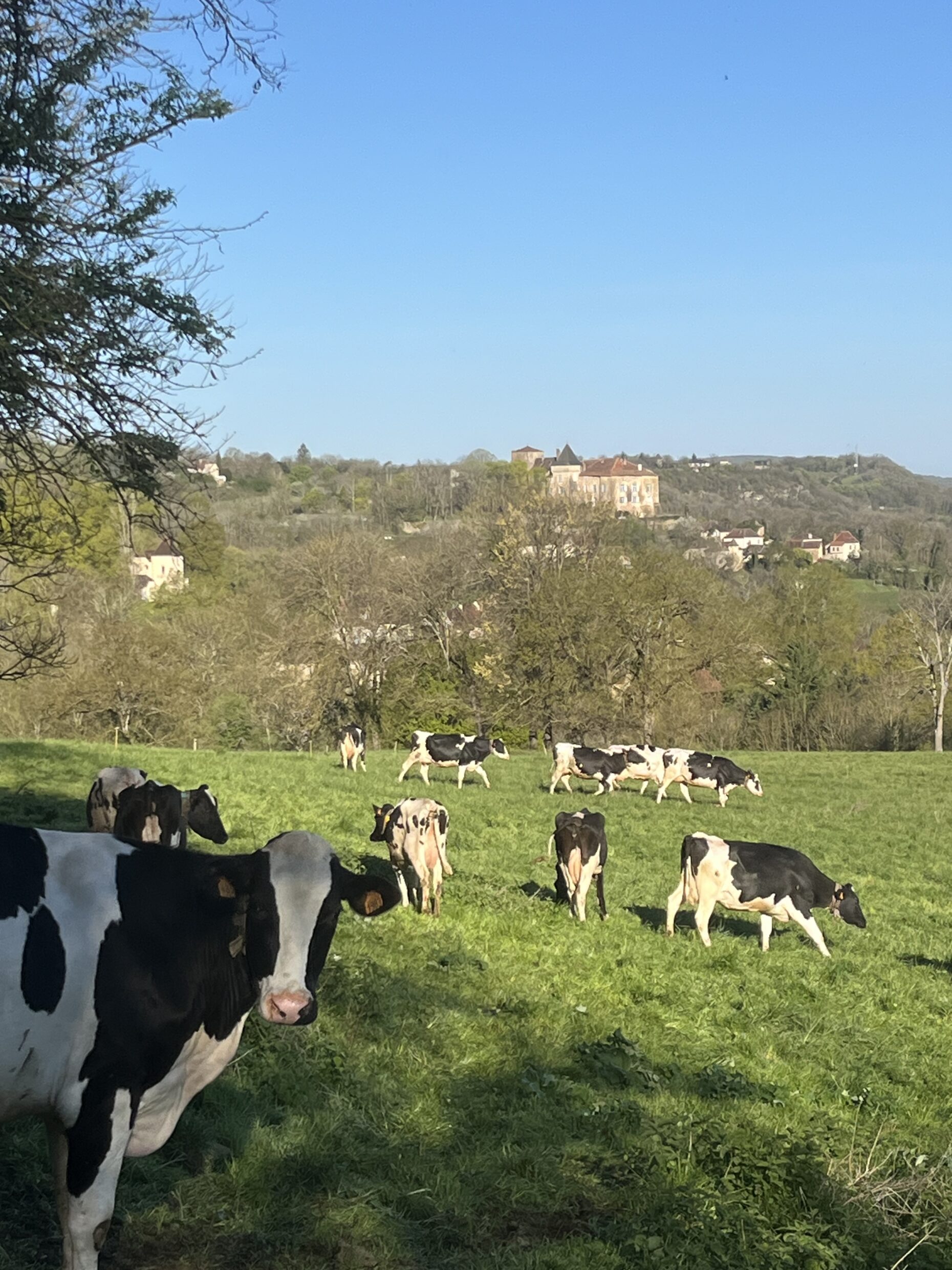 Sympa notre vue sur le château de Béduer ! Nous passons nos journées à paître dans ces belles prairies verdoyantes.